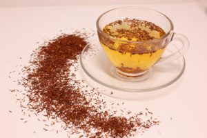 - Rooibos茶-含豐富SOD抗氧化物及豐富礦物質,不含咖啡因、草酸;其單寧酸,不及一般茶葉的1/2,溫和無澀味,夜晚飲用不會影響睡眠,反而可以舒緩,大人、小孩都適合飲用。(超氧物歧化酶,Superoxide Dismutase簡稱SOD,是一種源於生命體的活性物質,能消除生物體在新陳代謝過程中產生的有害物質。對人體不斷地補充SOD具有抗衰老的特殊效果。)